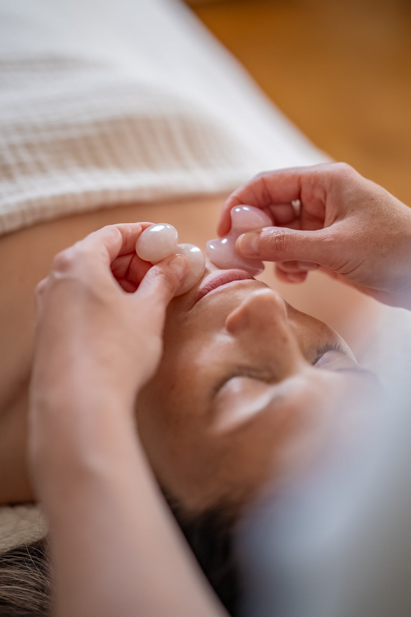 Ce massage est accompagné d’outils en pierres semi-précieuses, choisis pour leurs propriétés énergétiques et leur contact apaisant sur la peau. Chaque geste est à la fois lent et énergique, tout en étant précis et à l’écoute des besoins.